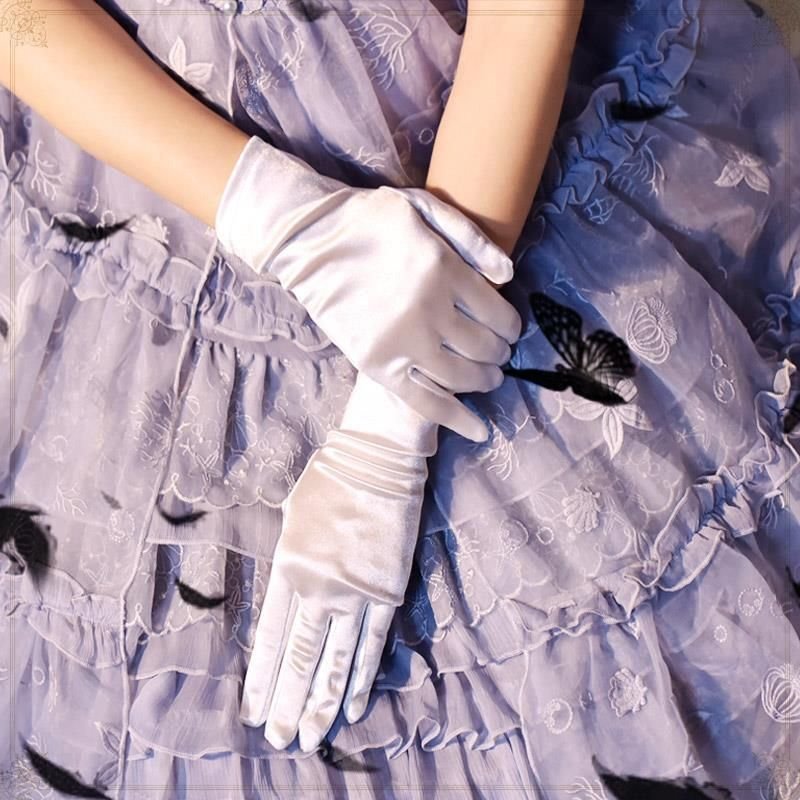 Women Fashion Retro Pearl Satin Dinner Gloves