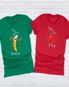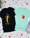 Valentine Day Cartoon Cute Funny Banana Apple Fruit Print Round Neck Short Sleeve Couple T-Shirt